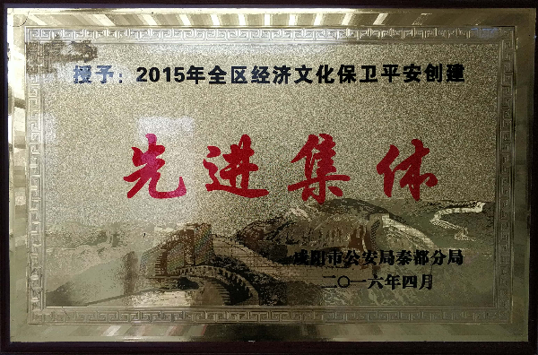 2015年咸陽市秦都區(qū)經(jīng)濟(jì)文化保衛(wèi)平安創(chuàng)建先進(jìn)集體