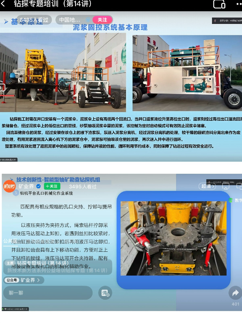 本次培訓(xùn)是自然資源部落實(shí)《地質(zhì)勘查及找礦突破培訓(xùn)工作方案》的關(guān)鍵舉措,繼地球化學(xué)、地球物理、地質(zhì)與遙感三期專題后,聚焦鉆探技術(shù)這一找礦突破核心支撐領(lǐng)域,創(chuàng)新采用抖音、視頻號(hào)等多平臺(tái)同步直播形式,吸引了全國(guó)各地地質(zhì)勘查單位千余位技術(shù)骨干積極參與學(xué)習(xí)。二一〇所作為陜西省內(nèi)唯一有獨(dú)立技術(shù)入選自然資源部先進(jìn)適用勘查技術(shù)推廣清單的單位,此次授課重點(diǎn)圍繞入選清單的“智能型鈾礦勘查鉆探機(jī)組及泥漿固控技術(shù)”展開(kāi)深度解析。