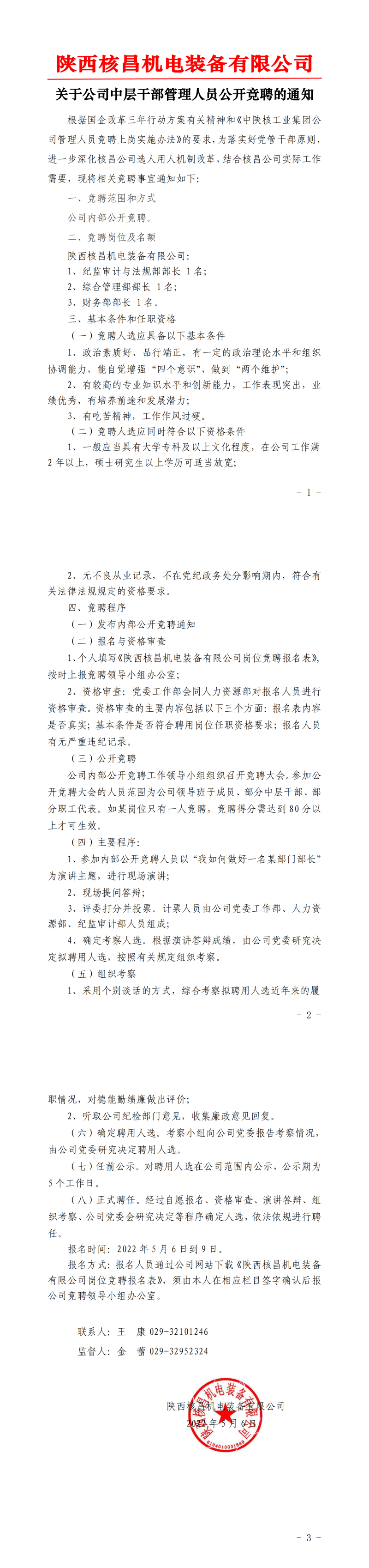 陜西核昌機電裝備有限公司內部公開競聘報名表
